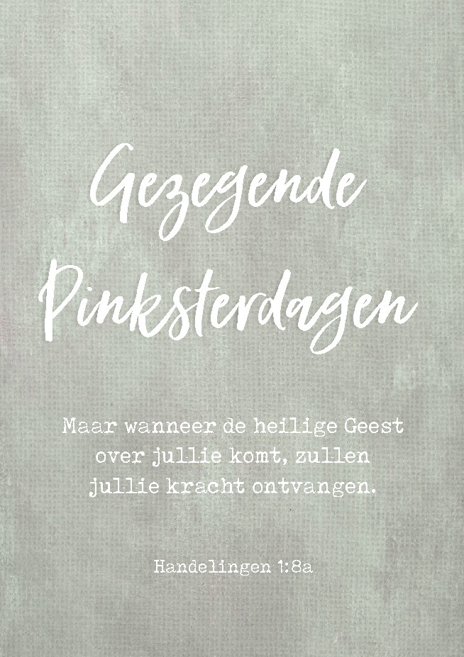 Tekst: “Gezegende Pinksterdagen – Maar wanneer de Heilige Geest over jullie komt, zullen jullie kracht ontvangen. Handelingen 1:8a”